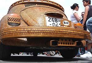 Um Fusca de madeira virou atração na cidade de Banja Luka, na Bósnia, segundo informações divulgadas pela agência AP. Momir Bojic, 50 anos, levou um ano para cobrir o seu velho fusca com carvalho e torná-lo trafegável. Momic ocasionalmente passeia com o carro pelas ruas da cidade, chamando a atenção dos pedestres. O veículo é inteiramente revestido pela madeira, incluindo pára-brisas e rodas.